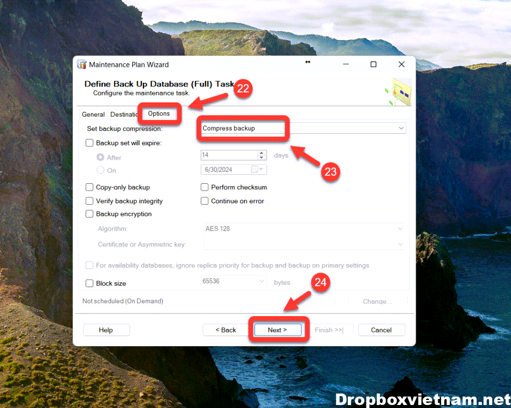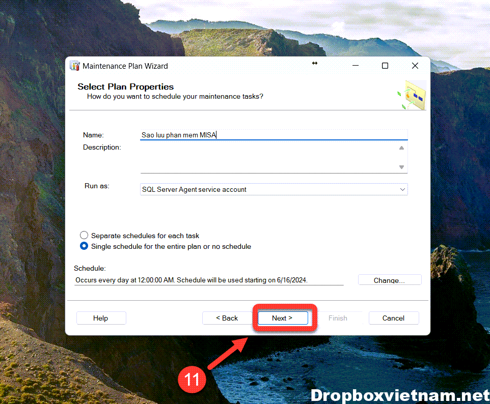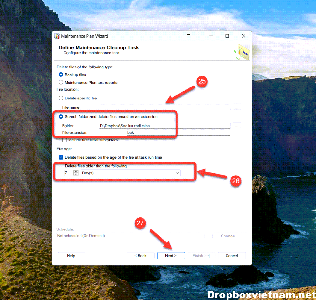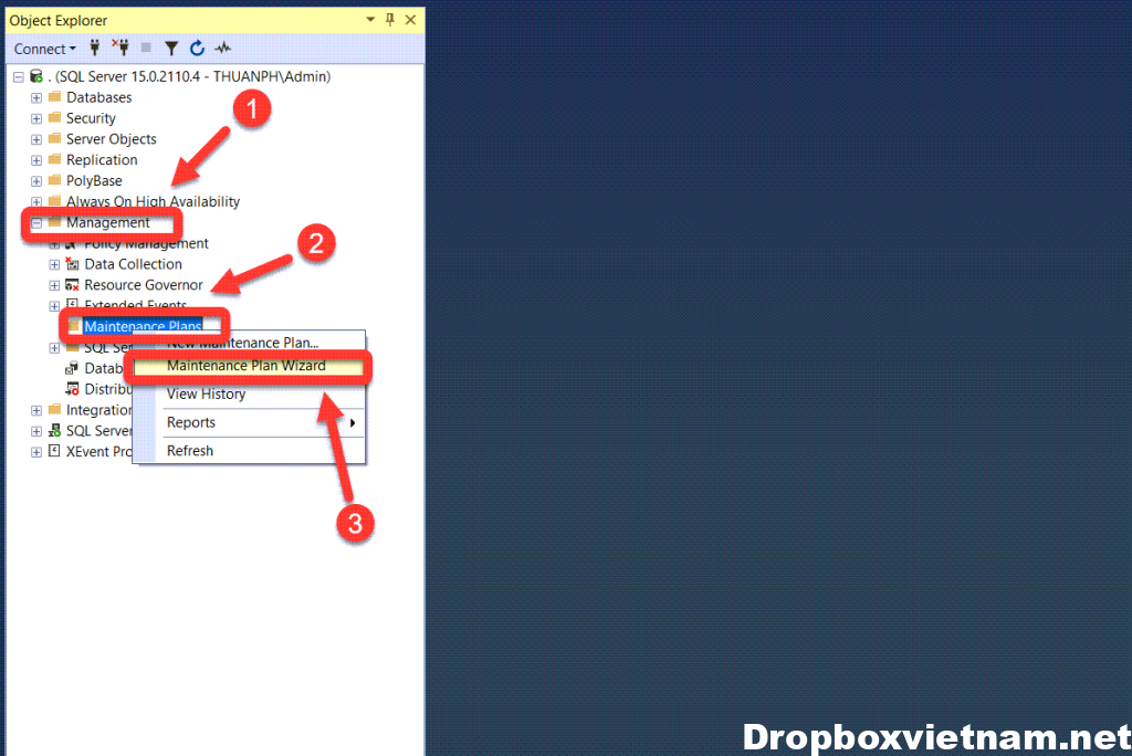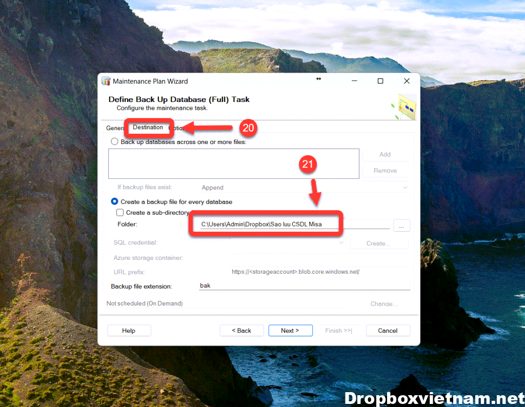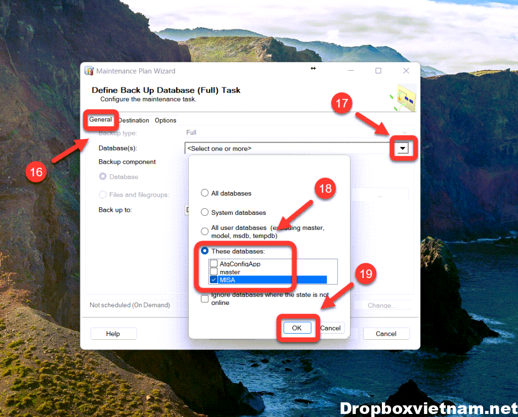 II, Cài đặt backup hàng ngày và dữ lại phiên bản backup gần nhất CSQL phần mềm MISA trên SQL Server lên Dropbox