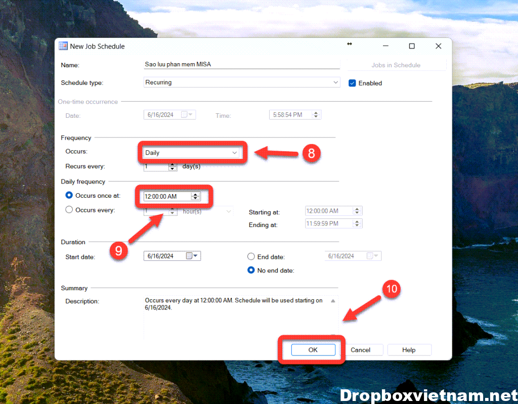 Bước 9, Chọn thời gian sao lưu trong ngày